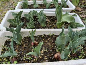チューリップは、もう少しで花が咲きそうです。