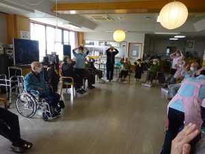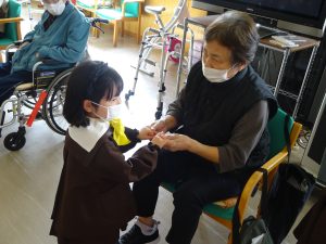 少し緊張した様子もありましたが、おじいさん・おばあさんとの交流(ゲームなど)で緊張もほぐれ、楽しく過ごしてきました😊
