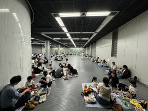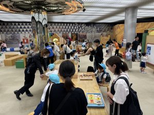 お昼は、広い会場でお友達とお弁当の見せ合い、お菓子交換をしながら過ごしました。
