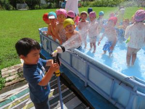 最後に、約1カ月半の間ほぼ毎日使ったプールに「ありがとう」のお礼をして、水遊びは終了しました。