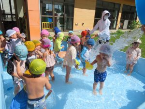 以上児のお友達は、9月から温水プールでの水泳指導が再開します。