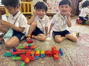 2024.09.06 日々の様子 9月6日(金)⛅ 今日は、たんぽぽ組さんのお友達が園庭で遊びました🎈 広い芝生の園庭で、身体を思いきり動かしました。 遊具で遊んだり、かけっこをしながら過ごしました。 今日は気温も落ち着いていて、お外遊び日和の1日でした😉 ゆり組さんのお友達は朝の自由遊びの時に、かっこいい飛行機を作っていました✈ 先日も作っていましたが、毎回新しい物を見せてくれます。 「写真撮って!」と嬉しそうに見せてくれました🤗 今週も1週間、ありがとうございました。 来週もよろしくお願いいたします❗