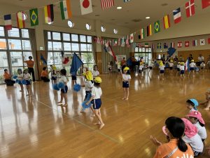 ひまわり組さんのマーチングから始まり、かけっこやお遊戯をしました。