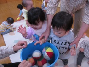 お兄さん、お姉さん達がスポーツカーニバルをしている間、0歳児のつぼみ組さんは…