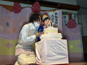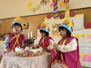2024.11.26 日々の様子 11月のお誕生会🎂 今日は11月生まれのお友達のお誕生会を行いました。 未満児4名、以上児2名のお友達をお祝いしました🎉 インタビューやキャンドルサービスをしました。 各クラスからの歌のプレゼントやお家の方からのメッセージもいただきました🎵 お誕生会メニューの給食は、チキンカツやポテトサラダ・コーンスープ等の種類豊富なメニューでしたね🤗 モリモリ美味しくいただきました😊 改めてお誕生児の皆さん、お誕生日おめでとうございます❗✨