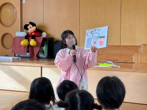 防犯ブザーの鳴らし方や‟いかのおすし”のお約束を学びました。