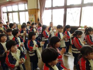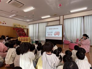 また、以上児は映写会も行い、今の季節の昔話の「雪おんな」のDVDを観ました。