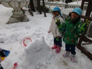 その後は、園庭で雪遊びをしました。やっぱり子ども達は雪が大好きで大はしゃぎでした😀