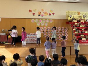 たんぽぽ組さんの女の子のお友達がお遊戯を披露してくれました。
