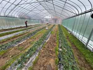 ビニールハウス内での栽培で、ミツバチがいないので人工授粉をしました。