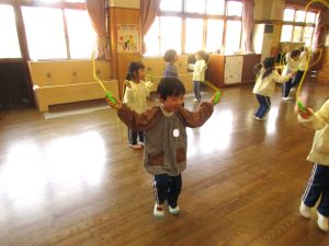 2025.02.28 日々の様子 2月28日(金)⛅ 今日もお天気でしたね。 園には、ひまわり幼児教育専門学院の実習生が来てくれました。 朝からお昼まで沢山遊んでもらいました😁 最近の自由遊びでは、おままごとが人気です。役を決めて、お料理を作ったりしています🍴 今日は、なわとび会や外遊びもしました。 さくら組さんのお友達も縄を1人で回せるようになってきました👍 外遊びでは、天気が良く「気持ちいいね~😚」と笑顔が沢山見られました。 今日で2月も終わりですね。 明日からの3月に向かって、よーい…ドン❗ 1週間、ありがとうございました。