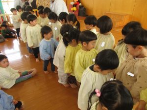 2025.03.18 日々の様子 3月18日(火)🌞 朝夕は冷え込みますが、日中はお天気になりましたね。 園庭には、黄色いクロッカスの花が咲き始めました。 今日は、未満児のおわかれ会を行いました✨ すみれ組さんとたんぽぽ組さんでプレゼント交換をしたり、ゆり組さんも参加して歌のプレゼントもしてくれました🎁 ゆり組さんが「以上児園舎で待っています!」と声をかけ、みんなで握手をしました🤝 「よろしくお願いします」とお互いに挨拶をする姿もあり、素敵な時間でした🥰 この1年間で、どのクラスのお友達も沢山成長しましたね☺️