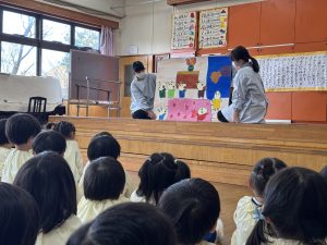 今日の朝のお集りでは、大型紙芝居を見ました。