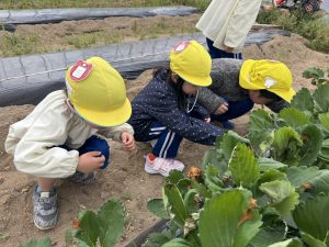 「どれにしようかな~🎶」とそれぞれが食べたいいちごを選んで収穫しました。