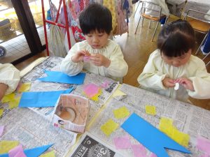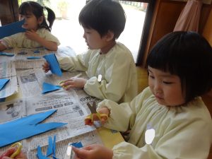 ハサミやのりを器用に使い、集中して制作をしていました。