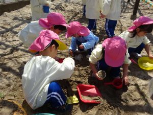 さくら・ひまわり組のお友達は、園庭で遊びました。