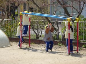 遊具を使う際は、近くで職員が安全に考慮しながら遊んでいます。