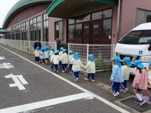 行帰りの道路では、交通安全教室で学んだことを実践しました。