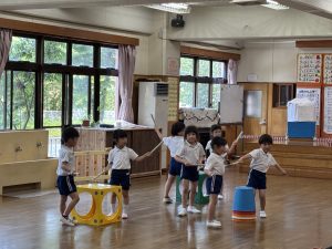 今日は、ひまわり組のお友達がはじめまつりに向けて練習をしました👘