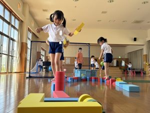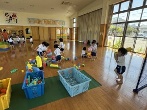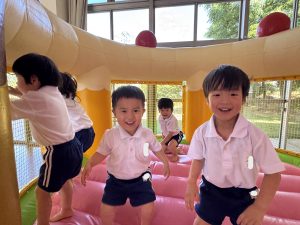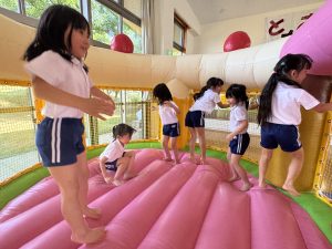 ふわふわドームやサッカー、ソフト積み木、大繩など、自由に遊びました😄