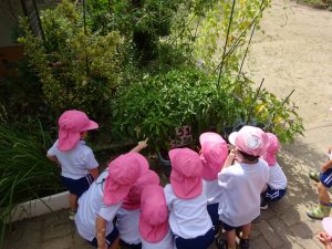 さくら組のお友達は、晴れ間にピーマンの収穫をしました🫑