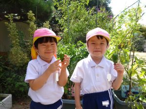 しかし、自分たちで収穫し、「みんなで取ったピーマンだよ~」等と声掛けをすると、食べられるようになるお友達もいます。
