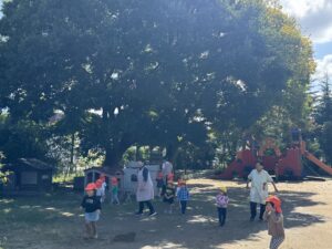 たんぽぽ組さんのお友達は、以上児園舎の園庭に来ました。
