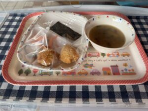 献立は、さつまいもコロッケ・かぶ漬け・なめこ汁でした。