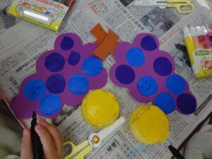 制作も手順を聞いて見本を見ながら可愛らしいブドウを作ることができました🍇