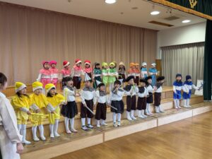 2025.12.10 日々の様子 12月10日(水)☔ 今日は1日雨が降りましたね。 日中は、おたのしみ会の衣装を着て練習しました。 今日もほんの1部だけ、お見せします👀 かわいいですね~🥰 練習が続いていますが、遊び等も取り入れながら活動しています。 衣装も着て、段々本番に近づいているのが分かり、張り切って取り組んでいます😉