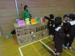 2025.12.16 日々の様子 12月16日(火)☔ 今日は、ひまわり組のお友達が藤見中学校へ行ってきました🏫 中学3年生の家庭科の保育実習に参加してきました。 子ども達が楽しめる遊びや玩具を考えて、用意してくれました😊 手作りの玩具で遊べて、子ども達は大興奮でした。 また、お兄さん、お姉さんとお話したり、遊ぶことができて嬉しかったようです😙 藤見中学校の皆さん、お招きいただき、ありがとうございました❗