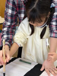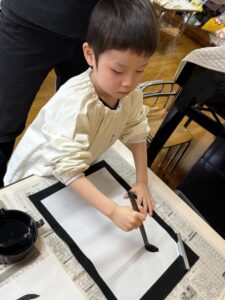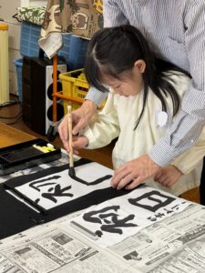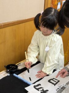 さくら組は「たこ」、ゆり組は「うま年」、ひまわり組は「初日の出」を書きました。
