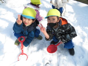 ひまわり組さんは防火パレードも行い、園周辺で拍子木を鳴らし、火の用心の呼びかけをしました。帰園後は、雪遊びもしました❄️
