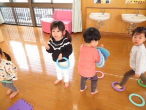 すみれ組さんは、ホール遊びをしていました。