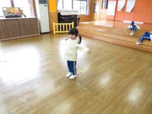毎日の自由遊びでも、「縄跳びしようよ!」とお友達と楽しみながら取り組んでいます。