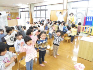 2026.03.10 日々の様子 3月10日(火)~進級式~🌸 今日は、たんぽぽ組さんの進級式を行いました🌸 今までは、さくら組さんになると以上児園舎での保育になりますが、来年度からは全園児が以上児園舎で過ごします。進級式も今回が最後になる予定です。 式では、園長先生から進級証書をいただきました。 1人1人名前を呼び、元気なお返事もできていました👏 4月から制服を着て登園です。 優しいお兄さん、お姉さんも待っています😊 残りの数日、未満児園舎での生活を楽しみましょうね🤗