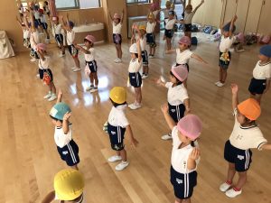 年少 もも組さんは初めての水泳指導で、とても楽しみにしていました。