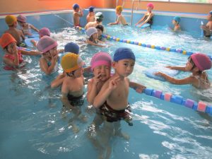 どこかのプール施設に行かなくても、保育園内に温水プールがあって嬉しいですね!