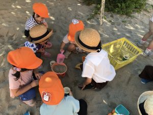つくし組さんは、砂遊びを楽しんでいました。