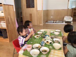 うめ組さんの食事風景。