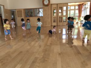 踊っているお友達と走っているお友達とまだまちまちです。