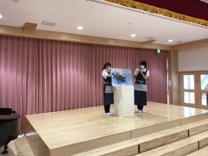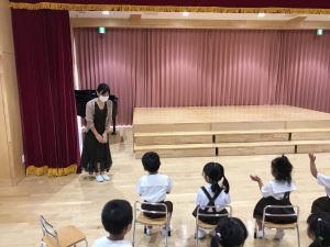 今日は、職員のピアノ発表や大型絵本の発表を行いました。