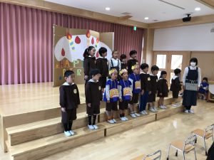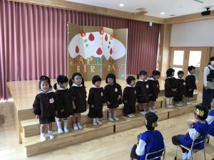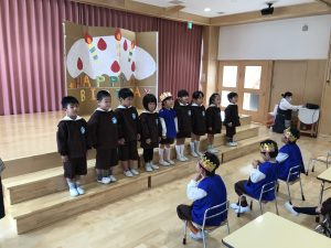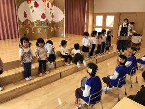2021.10.27 お知らせ, 日々の様子 10月お誕生会 今日は11月のお誕生会がありました🍰 インタビューを受けたり、キャンドルサービスでお祝いしてもらいました。 各クラスのお友達から歌のプレゼントをしてもらいました🎵