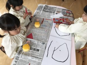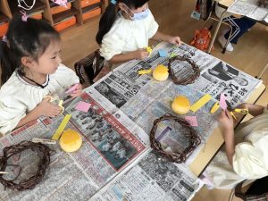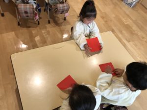 赤い折り紙・・・サンタさんでも作るのでしょうか🎅?