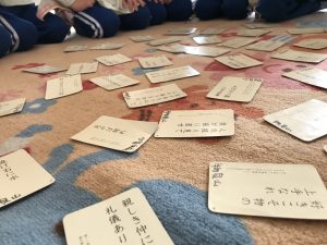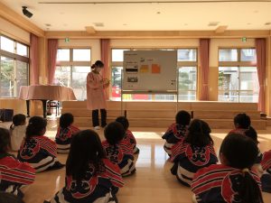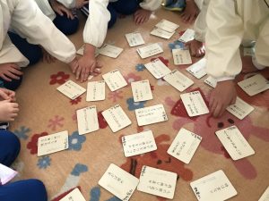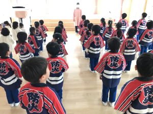2021.12.13 お知らせ, 日々の様子 幼年消防クラブ・交通安全教室・カルタ会 今日は、幼年消防クラブ・交通安全教室・カルタ会を行いました! 防火のハッピを着て行いました。 特に寒くなったこの季節、暖房器具を使うので気を付けましょうという話をしました🔥 ご家庭でも、戸締り用心、火の用心に気を付けましょう。 カルタ会ではグループに分かれて取り合いました。 「はいっ!」という掛け声と共に勢いよくとっていました。