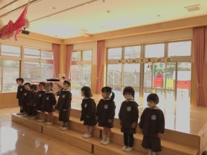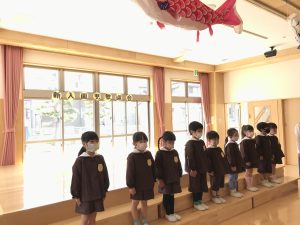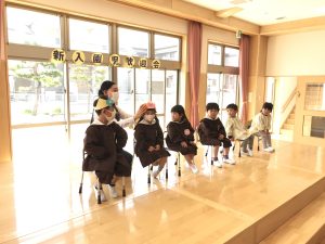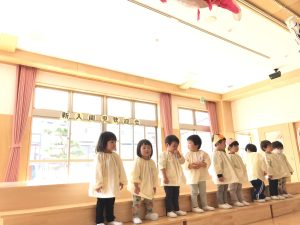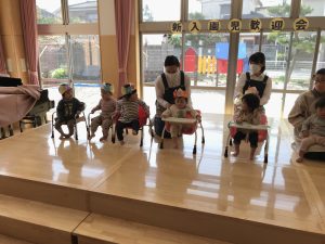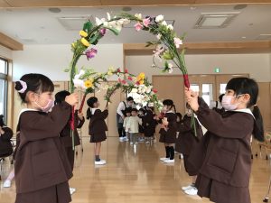2022.04.13 お知らせ, 日々の様子 新入園児歓迎会🌸 今日は、新入園児歓迎会が行われました🌸 0・1歳児 うめ組さん、園長先生から冠を被せてもらい嬉しそうでした。 冠は、5歳児 ちゅうりっぷ組さんが頑張って作りました✂ 続いては、2歳児 つくし組さん、3歳児 もも組さん、4歳児 すずらん組さんの 歓迎会です。 アーチを持つのは、5歳児 ちゅうりっぷ組さんです。 大きいお友達も、園長先生から冠を被せてもらいました。 各クラスの歌の発表もしました♬ 今日は、クラス写真の撮影もしました。