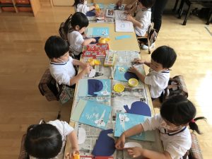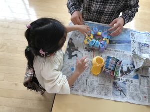 2022.05.16 お知らせ, 日々の様子 時計制作 6月の時の記念日にちなんで、子ども達が時計制作を行っています。 数字を見ながら、「1、2,3・・・」と、 数字を見ながら丁寧に貼っているのは、ちゅうりっぷ組さんです。