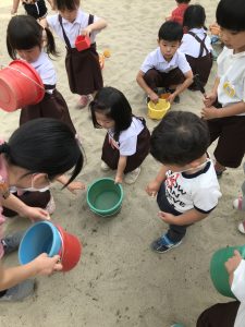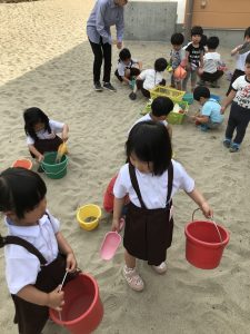保育園の園庭は全部が砂場なので、砂遊びし放題です!