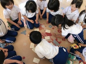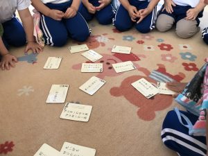 みんなで元気に読みながら、カルタ取りをしました。