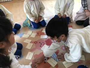 2022.10.11 お知らせ, 日々の様子 幼年消防クラブ・交通安全教室・カルタ会 今日は、幼年消防クラブ・交通安全教室・カルタ会が行われました。 火事や交通安全について、真剣にお話を聞いていました。 カルタ会では、「はいっ!」と元気な掛け声いっぱいで ことわざカルタを取っていました。